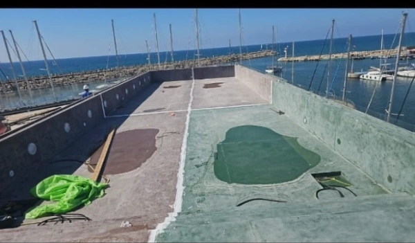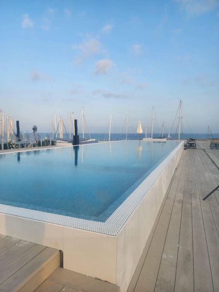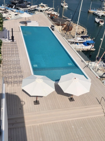 בריכה אולימפית בארבע חלקים חיבור בשטח עם ציפוי פסיפס